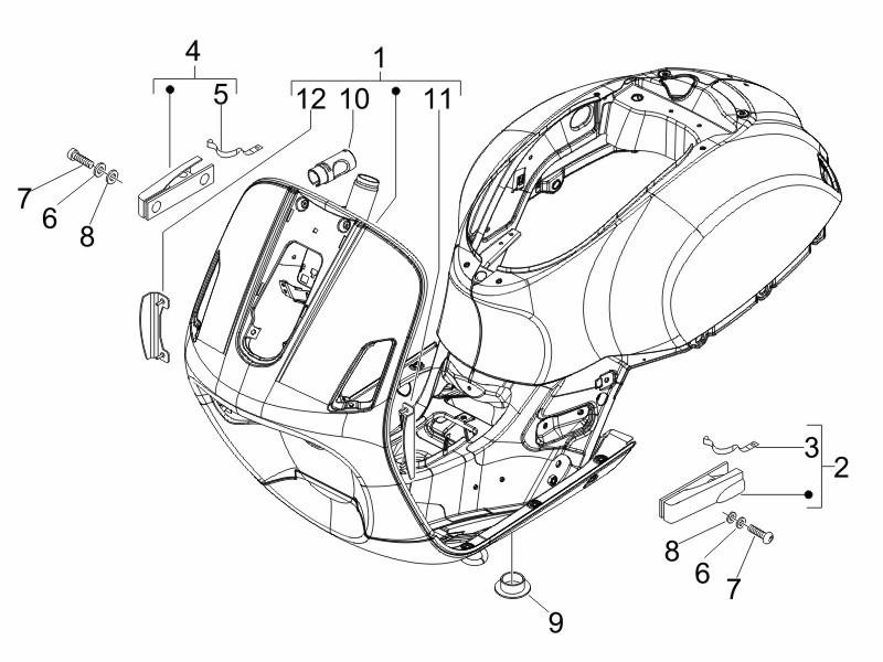 Extremité de dessous de caisse Vespa GTS/​GTS Super/​GTV/​GT 60/​GT/​GT L 125-300ccm - DROITE