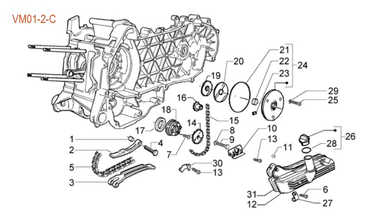 Chaîne entraintement pompe à huile Vespa ET4/LX/LXV/S/GTS /GTS Super/GTV/GT 60/GT/GT L 125-300ccm