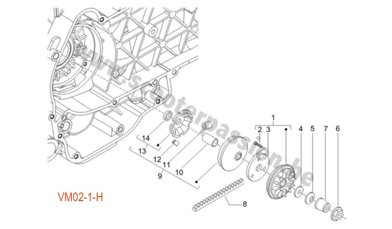 Glissière slider variateur Vespa ET4/LX/LXV/S/GTS/GTS Super/GTV/GT/GT L 125-200ccm 4T AC/LC