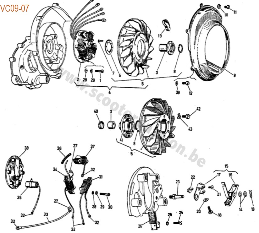 Ailettes refroidissement volant Pinasco allumage Flytech Vespa VNB VBB SPRINT SUPER SPRINT VELOCE PX