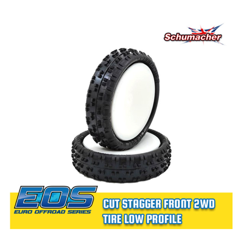 Kit 2 pneus SCHUMACHER CUT STAGGER LOW PROFILE montés collés sur JANTES BLANCHES