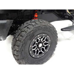 D'un poids de 6,8k et avec ses dimensions de 743 X 323 X 262mm, ce crawler 1/8 en impose tant par ses dimensions que par la qualité de ses composants.