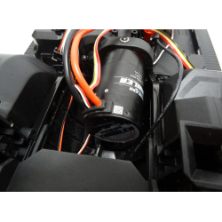 Au niveau électronique, rien n'est laissé au hasard car ce Ram 1500 de chez Traction Hobby dispose d'un combiné Hobbywing Quicrun FOC 8ihgt de 1800Kv ainsi que d'un servo de direction de 33kg. Les servos de commande de transmission sont des servos spécifiques de 4kg. Tous les servos disposent de palonnier aluminium