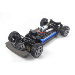 Empattement, garde au sol et voie réglables, compatible avec de nombreuses options Tamiya (roulements, amortisseurs hydrauliques, pièces alu…) pour faire évoluer les performances.