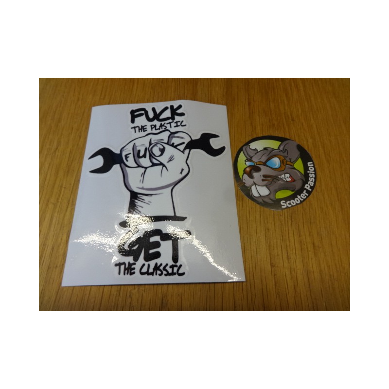 Autocollant ( à transférer) 100X140mm "Fuck the plastic, get the classic"