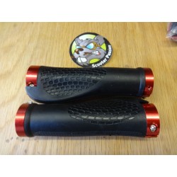 Paire de poignées CYCLONE ergonomiques NOIRES avec inserts CNC rouges
