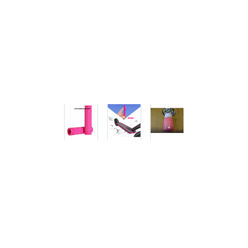 Contour de protection rose, poignées roses, protection levier frein rose, peinture phosphorescente permettant de peindre les caoutchoucs, bouchon de valve etc...