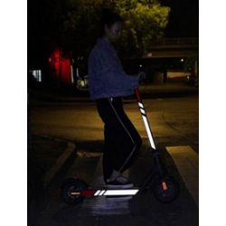 Ce kit ajoute une touche de couleur et de personnalisation à votre trottinette mais augmente sa sécurité dans la pénombre ou la nuit grâce aux autocollants réfléchissants