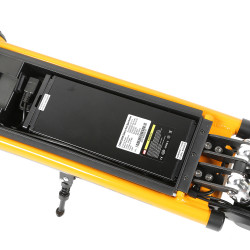 La nouvelle trottinette électrique hikerboy FOXTROT dispose d'un châssis tubulaire en aluminium pour une bonne rigidité, avec le vrai plus de ce modèle une batterie amovible qui se range dans le deck.
