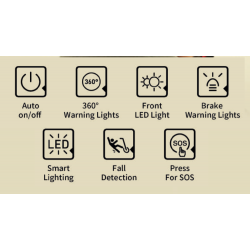 Les feux d'avertissement avant fonctionnent en tandem avec les feux arrière à 270° pour protéger la sécurité des utilisateurs dans toutes les directions. Lorsque le capteur intégré détecte un retard important, les feux avant et arrière s'allument pendant 8 secondes pour attirer l'attention des véhicules et des piétons devant et derrière.