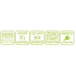 - Tableau bord digital (réserve batterie, vitesse, t°, distance)