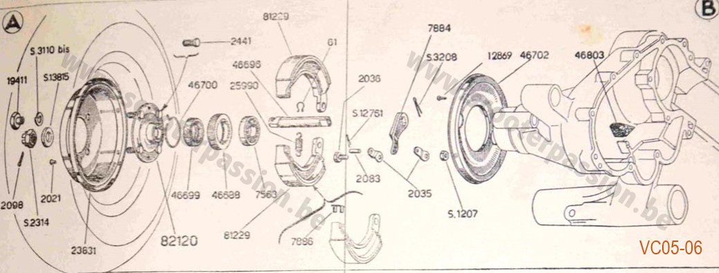 Veilig clips remschoenen achterrem V50/PV/ET3/VNA-T4 /Rally180-200/ GS-3/PK/S/XL /XL2/FL/PX/Lusso/T5