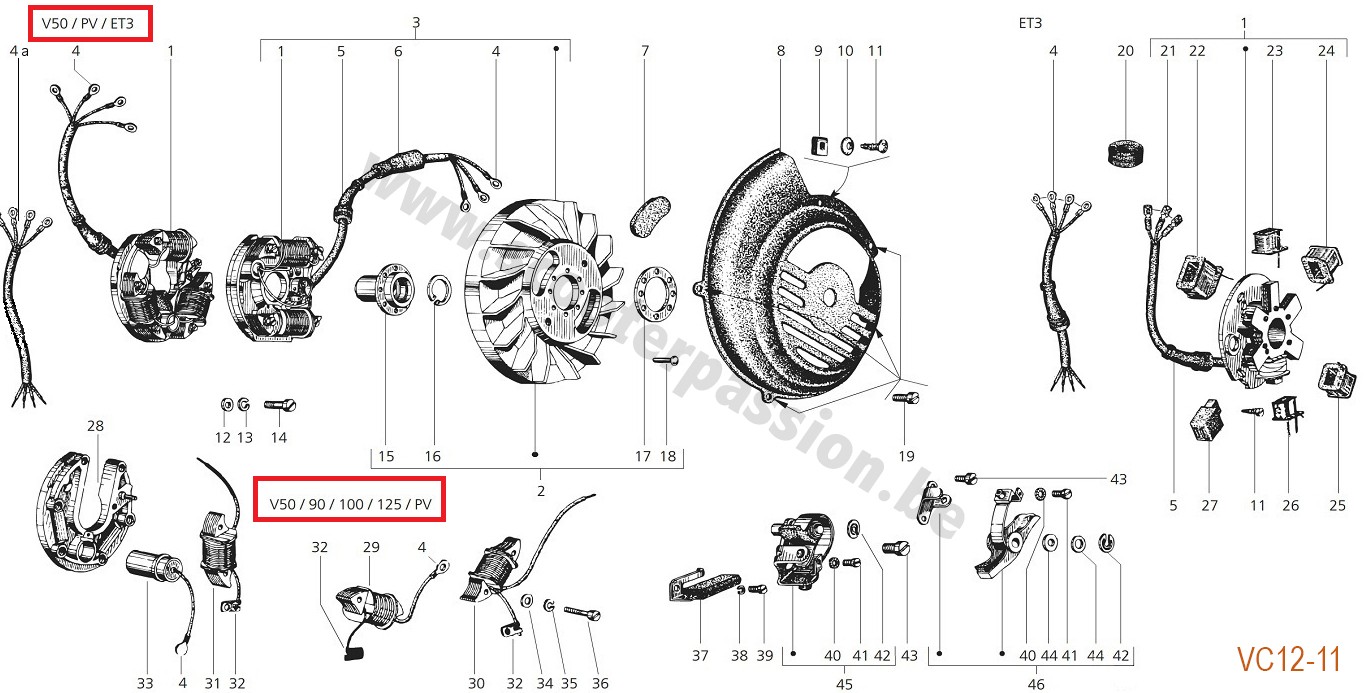 Vliegwiel trekker Vespa 50-125/PV/ET3/PK50 -125/S/XL/XL2/125 GT-TS/150 GL-Super/200 Rally/PX/T5/Cosa