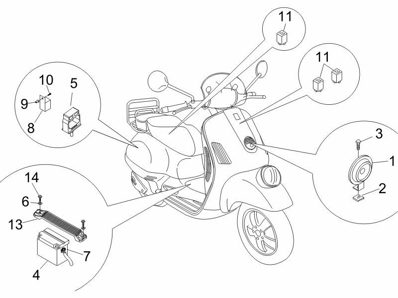 Batterie, klaxon et relais