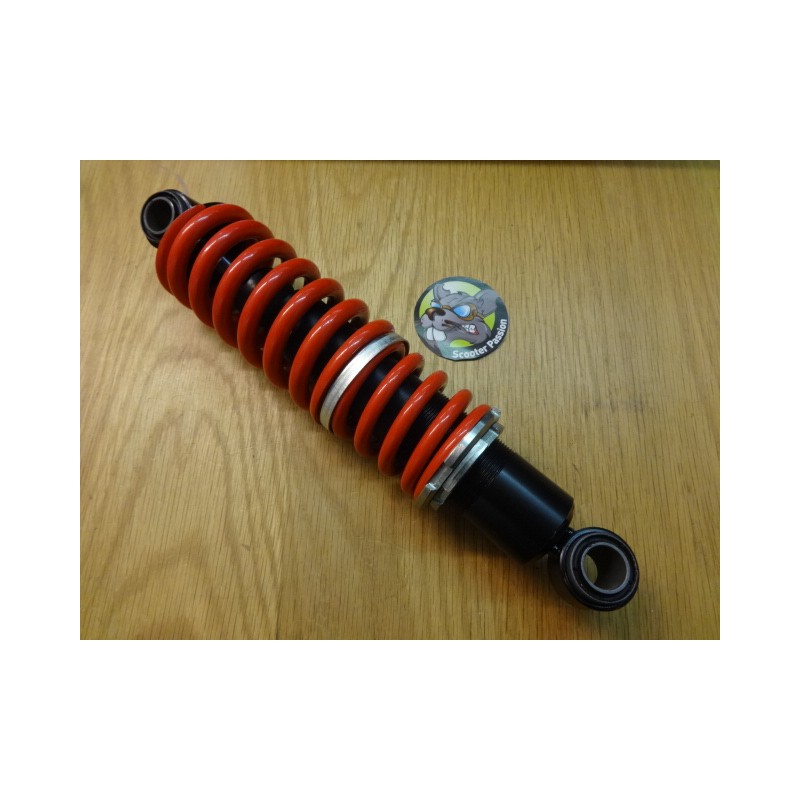 Version REGLABLE pour Lambretta Serie 3 et GP. Se distingue de l'amortisseur de Serie 1 et 2 par la présence d'un anneau chromé sur le ressport principal. De nombreuses Lambretta sont montées avec le mauvais modèle d'amortisseur ce qui diminue notablement l'efficacité de la suspension arrière et déséquilibre le scooter lorsqu'il est sur la béquille (roue avant ne touchant pas le sol).