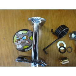 Comprend : pédale chromée, serre câble, rondelles, buselure bronze pour l'axe, ressort de rappel, clips de maintien