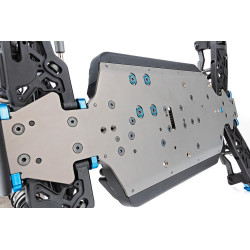 De ophanging is volledig herzien met nieuwe voor- en achterste schokdempersteunen met een laag zwaartepunt en kortere schokdempers, evenals nieuwe achterste ophangingsarmen met 3 gaten die soepelere schokdempers en veren mogelijk maken met behoud van ondersteuning in snelle bochten. De nieuwe achterste naven met brede basis zijn verkrijgbaar in drie vaste ashoogtes en maken gebruik van 3 mm koolstofvezel naafringen om verschillende geometrische opties mogelijk te maken.