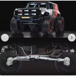 De MJX Hyper GO H12P (Ford Bronco R Baja 1000) is een natuurgetrouwe 1/12 Crawler met Brushless-aandrijving, een robuust metalen ladderchassis en een gelicentieerde ABS-scale carrosserie.