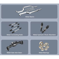 Portaalassen (Gate-Bridge-transmissie), een 20 kg servo met metalen tandwielen en oliegevulde metalen schokdempers zorgen voor gecontroleerde tractie en uiterst nauwkeurig klimmen op rotsen, grind of bospaden. De 45A Brushless-regelaar (E45M) levert in combinatie met de 3650-motor een indrukwekkend koppel voor technisch crawlwerk.