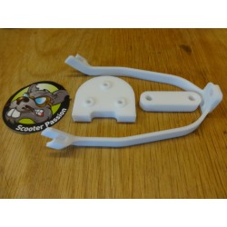 Ce renfort permet d'éviter les vibrations et la casse du garde-boue. Il intègre une protection du câble d'alimentation du feu arrière (ce dernier s'abîmant sous les projections de la roue) et il est prévu pour le passage en pneus de 10" de votre trottinettte