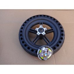 Achterwiel: wiel + lagers + demperd volrubber band. Gemonteerd