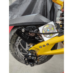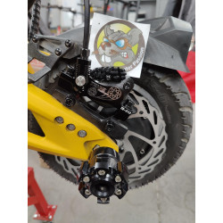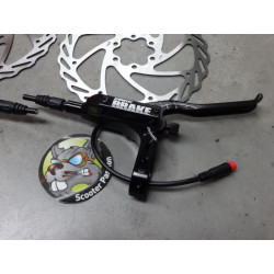 Ce kit est complet (étriers, maitres cylindre, durites, supports, raccords, fixation) et dispose également du système de connexion électronique pour le fonctionnement du frein électronique et des feux stop.