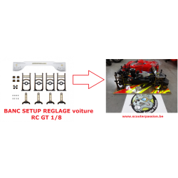 Het afstellen van het chassis van een 1/8 RC GT auto is een complexe wetenschap die speciaal gereedschap vereist. Met een tuningbank kun je :